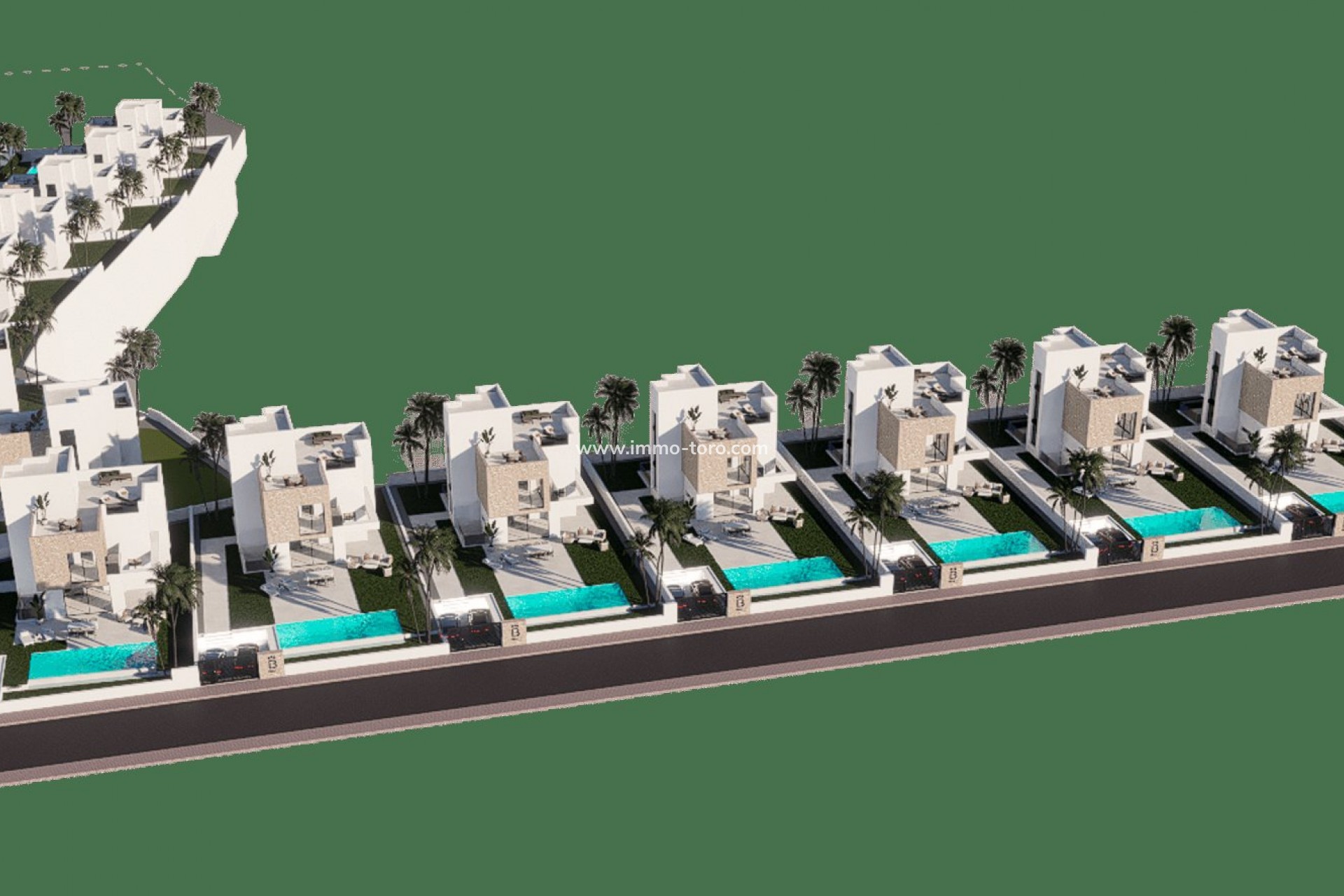 The exteriors of this residential development in Finestrat-Benidorm are designed to maximize the enjoyment of the Mediterranean climate. Each villa has a private swimming pool, perfect for cooling off on hot days. The spacious solariums and terraces offer ideal spaces for relaxing, entertaining guests or simply enjoying the panoramic views. The properties also include manicured gardens that complement the modern architecture of the villas, creating a tranquil and inviting ambiance. In addition, the proximity to the beach and important services adds significant value, providing easy access to recreational activities and essential amenities for everyday living.